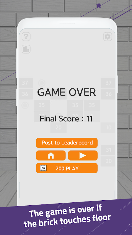 - When the bricks reach the bottom line, game is over.
