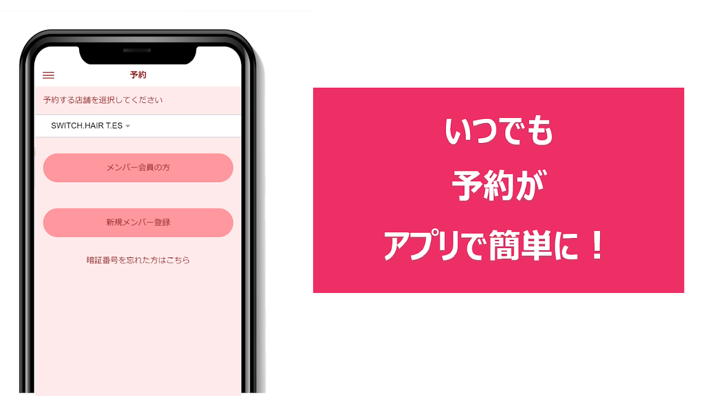 Questa è l'applicazione ufficiale di SWITCH.HAIR, un parrucchiere a 7 minuti a piedi dalla stazione di Honjo Waseda.