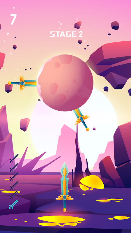 Prova a padroneggiare la tua abilità nel lancio della spada per sconfiggere il bersaglio rotante