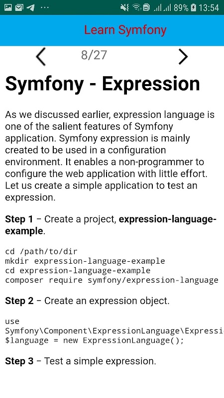 Informazioni sull'APK Symfony Tutorial
