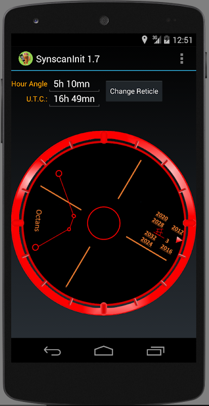 Cette application simple vous permettra d'initialiser rapidement votre synscan pour la mise en station de votre télescope. Il calcule aussi l'angle polaire avec deux reticules differents.