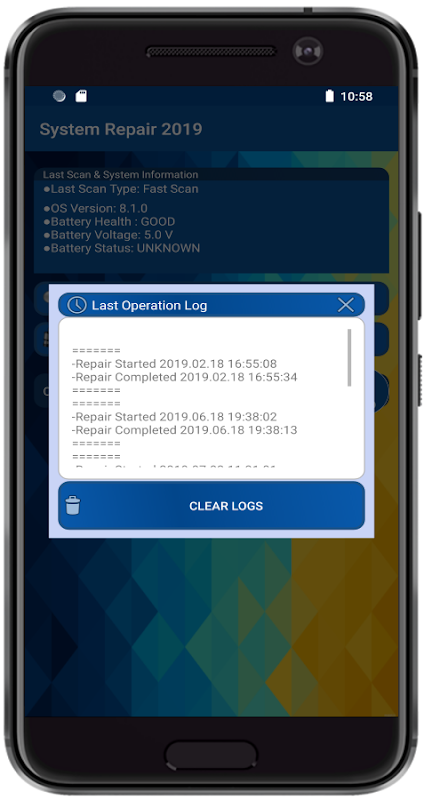 System Repair for Android 2019 will check your entire system to decide what needs to be done for maximum performance and stability.Scan And Repair is performed at the same time.
