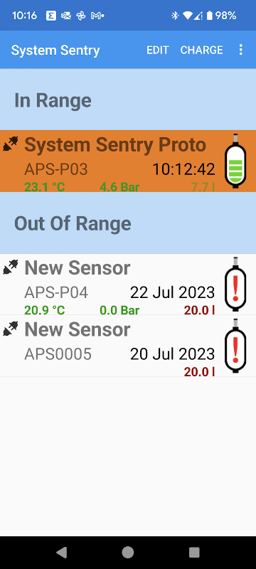 Letture di pressione e temperatura in tempo reale dal nostro sensore BluetoothLE a basso costo.