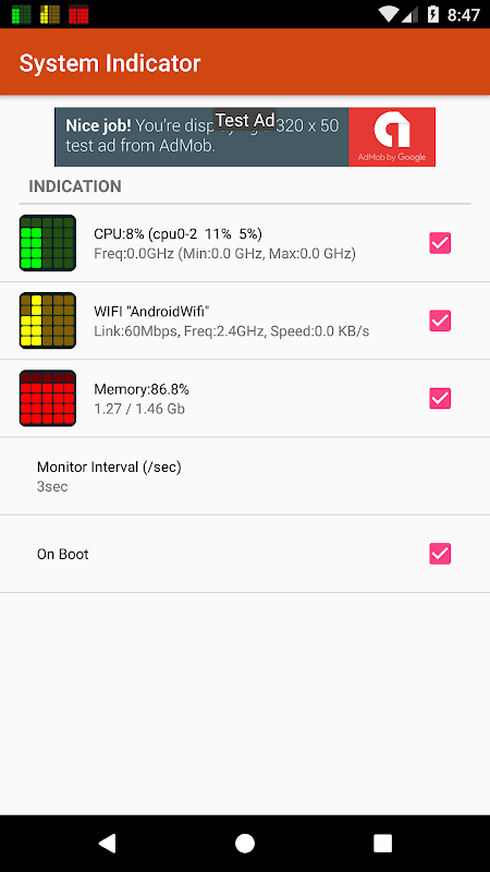 Questo display CPU applicazione, rete, utilizzo della memoria nella notifica.