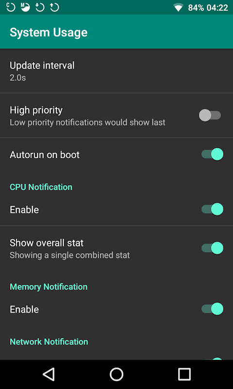 Monitorare l'utilizzo del sistema a barra di stato / notifica
