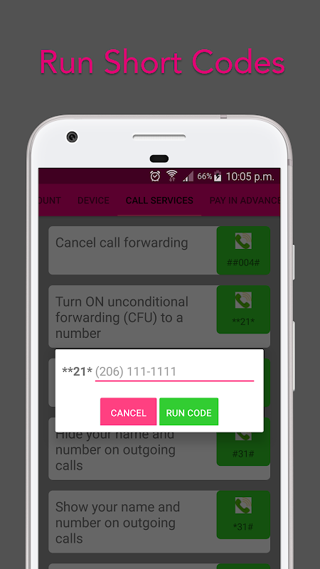 One-Stop App to run Short codes and get T-mobile account info in offline mode.