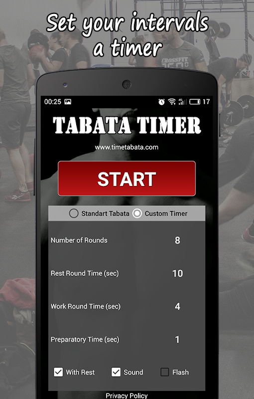 Tabata Timer L - timer con la musica vigorosa e impostazioni flessibili.