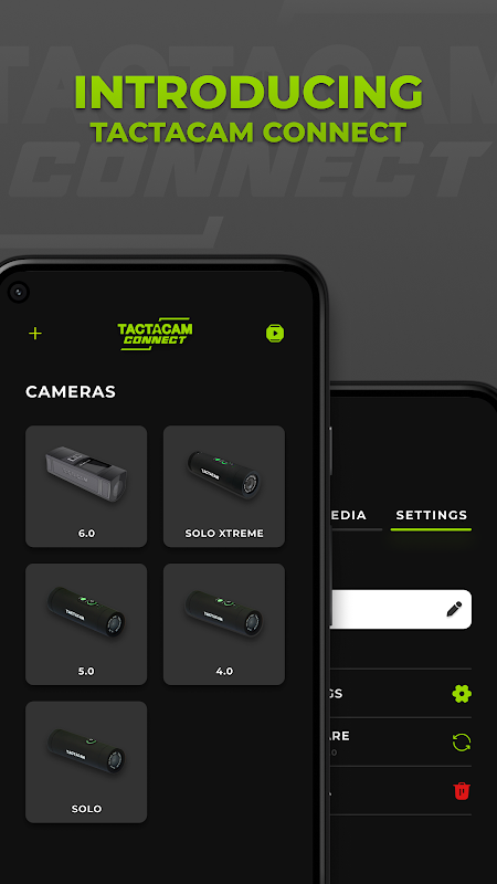 Collega e controlla le tue telecamere Tactacam POV utilizzando il tuo dispositivo Android con l'app. Dopo aver stabilito la connessione, puoi guardare immediatamente il feed della tua videocamera, avviare o mettere in pausa la registrazione, modificare o riprodurre video e scaricarli direttamente sul tuo dispositivo per condividerli facilmente su tutte le tue piattaforme di social media.