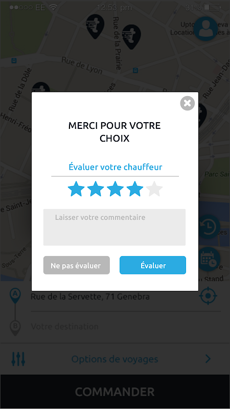 En fin de course, si vous le souhaitez, notez votre chauffeur et donnez votre avis pour nous aider à mieux vous servir.