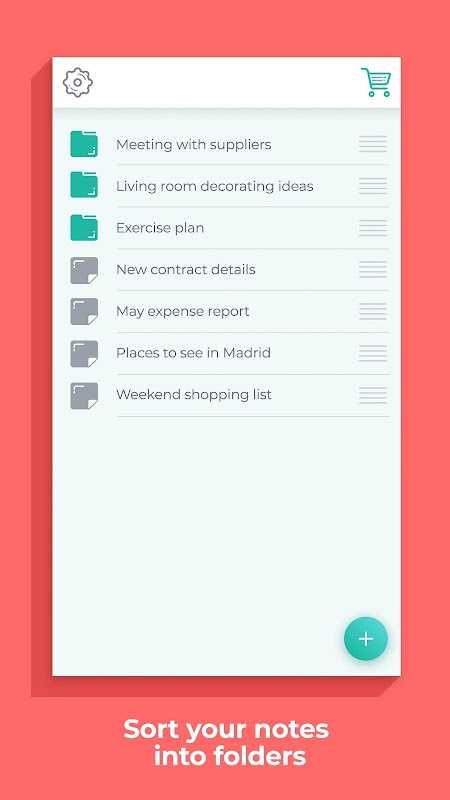 Organizza le voci del diario e tieni traccia di tutti i tuoi pensieri e idee. È possibile aggiungere il numero di promemoria di note appiccicose che si desidera e organizzare il loro ordine nell'applicazione note del memo pad.