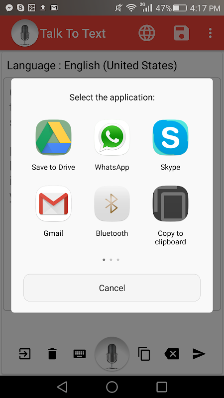 Voice typing is a simple app and user friendly application. The text appears after you done Talking . Once you get the regularity, you can use the app and send ,share long textes and articles in other social media and many messaging application such as Watsapp, Viber, Skype , note tha voice typing Supports more than 70 different languages.