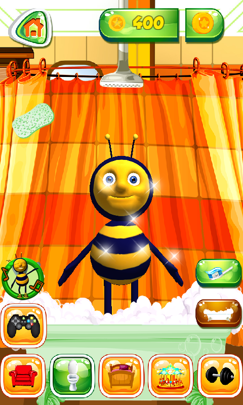 L'ape conduce una vita davvero impressionante nella fattoria. Si preoccupa anche molto del loro aspetto, quindi il nostro eroe va regolarmente in palestra per fare esercizio. È la cosa più naturale per l'ape parlante esercitarsi regolarmente e mantenersi in forma. Il tapis roulant è ciò che preferisce e può correre o camminarci sopra, è la tua scelta. Vive nella fattoria dove tutto è magico. Quindi, puoi toccare l'acquario nel soggiorno per vedere il pesce uscire da esso e toccare il cassetto per vedere un pulcino carino. Il tuo simpatico amico sa suonare il piano e il balafon, uno xilofono di legno. Ascolta il tuo adorabile eroe mentre si esibisce e rimarrai stupito. L'ape parlante ha una camera da letto splendidamente decorata, tutto deve essere perfetto quando ha bisogno di riposare. Il gallo può svegliarlo, ogni volta che pensi che abbia dormito abbastanza. L'ape è sempre pronta per la conversazione, quindi parla con lui e ascolterà molto attentamente. Più tardi sarà in grado di ripetere le tue parole. C'è anche un bagno nella sua casa meravigliosa. Riesce a lavarsi i denti, a fare un bagno e in seguito si asciugherà con l'asciugamano. Gioca ai migliori mini giochi e aiuta il tuo amico a raccogliere monete per sbloccare tutte le stanze. In Jumpy Bee, salterai su infinite piattaforme insieme, i malvagi insetti proveranno a rubare un delizioso pasto! Devi proteggere questo cibo distruggendo gli insetti cattivi come il ragno e il bruco, ma fai attenzione a non colpire farfalle e coccinelle, poiché sono i tuoi amici. Gioca a Bee Smash e colpisci l'animale con un martello non appena lo vedi uscire dalla fossa. Sbrigati! In Bee Jump, toccherai semplicemente la piattaforma su cui vuoi che il tuo eroe salti. Divertiti molto con questo animale domestico nel parco giochi, è molto bravo negli sport. Inoltre, all'esterno c'è un trampolino dove l'ape può saltare. Tu e il tuo eroe formerete una grande squadra e diventerà rapidamente la vostra applicazione preferita. Quindi, non esitare a installare gratuitamente il popolare gioco di animali parlanti parlanti.