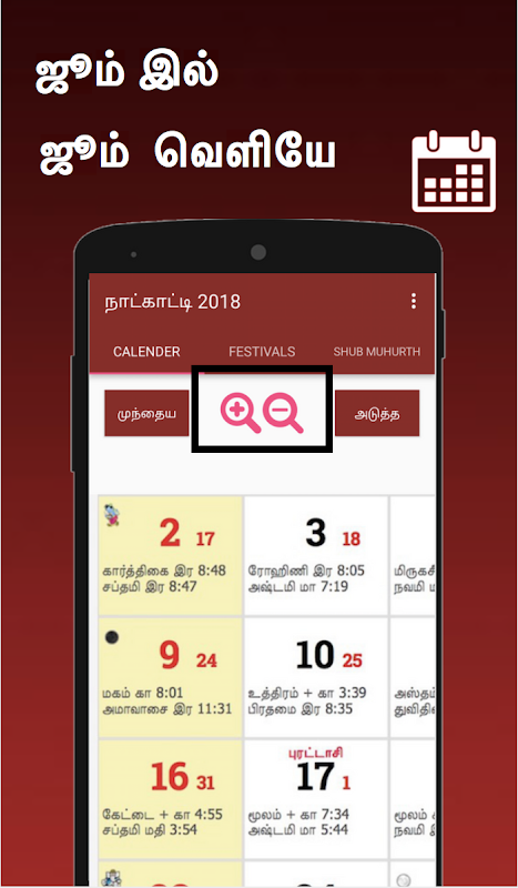 ► Tamil Calendar app 2018 has Matam, Varam, Aṇṭu, Tithi, Nakshatram, Amavasya, Pournami, Rahukala for 2018
