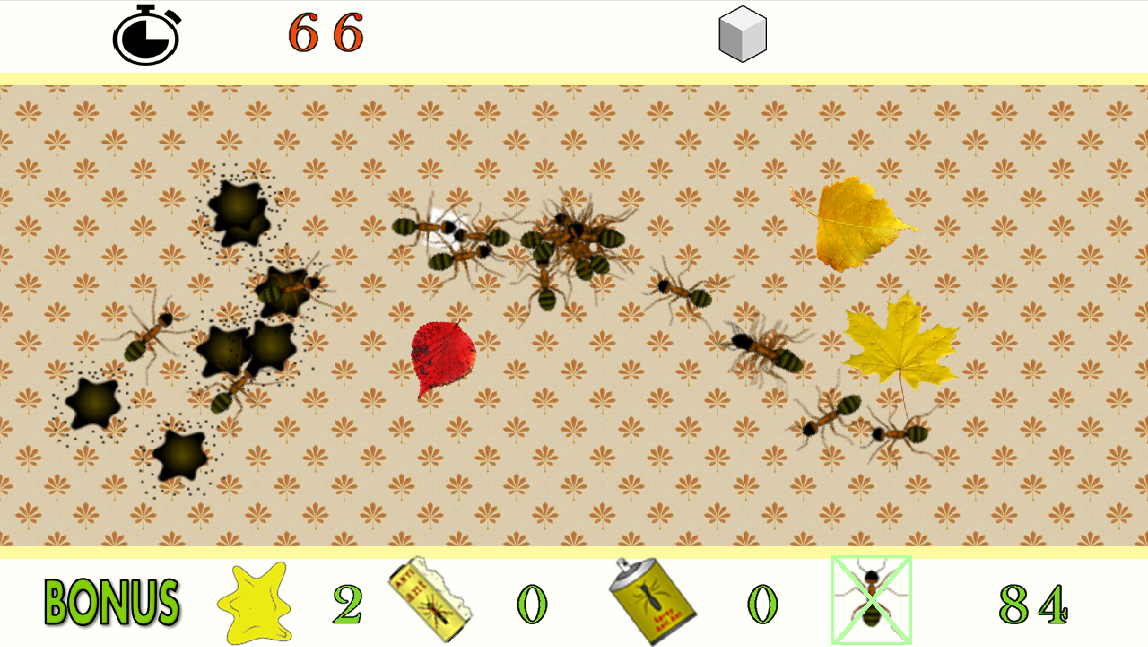 Points are awarded to the player for the time that he lasted and for the number of ants destroyed.