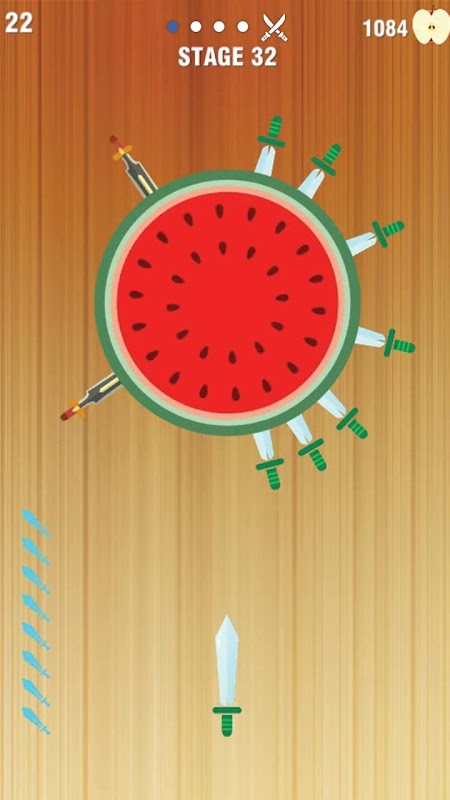Tap to throw knives at the spinning wheel and fruits. Break or slice, target carefully not hit to other knives that are already on the spinning wheel. Slicing fruits will enable you to unlock more knives.