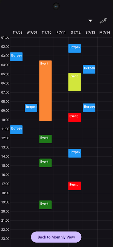 La nostra vista settimanale pulita e minimalista ti offre una panoramica perfetta del tuo tempo. Visualizza a colpo d'occhio i tuoi slot liberi e gli orari di punta. Per aggiungere un evento, tieni premuto a lungo sulla fascia oraria desiderata e l'elenco dei modelli apparirà immediatamente. Nessun menu complicato, nessun passaggio aggiuntivo.