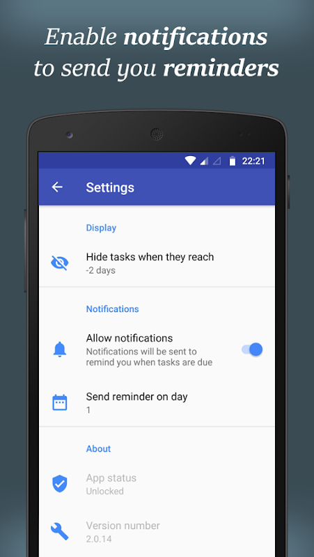Task Countdown è un elenco di attività molto semplice, ordinato per giorni fino a scadenza. Organizza te stesso con il minimo sforzo. Sottolineare meno, concentrarsi di più e ottenere risultati migliori.