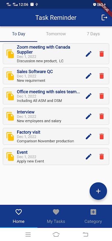 L'app Tasks Reminder (Daily Notes) crea la data e l'ora dell'attività Push Notify