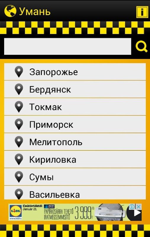Крупные города, которые присутствуют в программе поиска такси - Киев и киевская область: