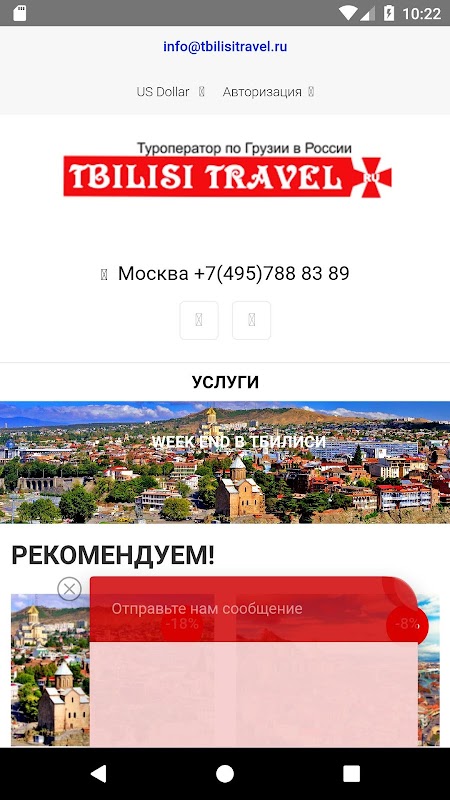 Туроператор по Грузии. Организация и проведение экскурсионных программ, экстремальных и эко туров. Отсутствие языкового барьера, низкие цены и сервис, достойный европейского уровня - вот составляющие успеха местных курортов. Вас ждет погружение в волшебную атмосферу странствий и приключений, открывая для себя интересные места и маршруты.