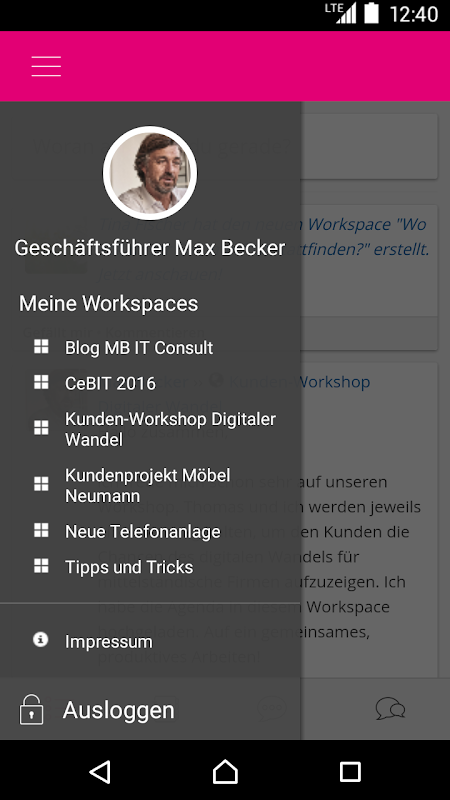 - Im Newsfeed sehen Sie alle wichtigen Neuigkeiten aus Ihrem Unternehmen und Projekten.