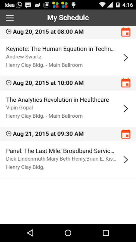 • Search for key words on schedule to get information on a session, speaker or venue