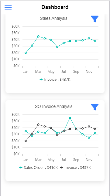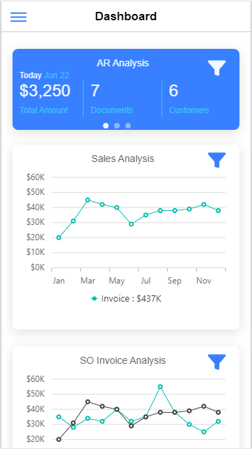 features include AR Analysis,Overdue AR, Bank Analysis, sales Analysis and SO Invoice Analysis