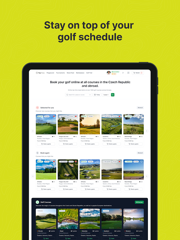Prenota i tee time, monitora le statistiche e divertiti a giocare a golf su oltre 750 campi in tutto il mondo.