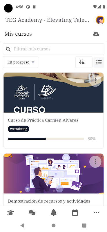 Continua la tua formazione in ogni momento! Accedi a tutti i contenuti sulla tua piattaforma TEG Academy. Controlla il contenuto dei tuoi corsi, attività, voti, partecipanti, calendario, tra gli altri.