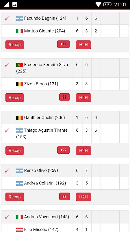 App di punteggio live flessibile, per Grand Slam, ATP, WTA, ATP Challenger.