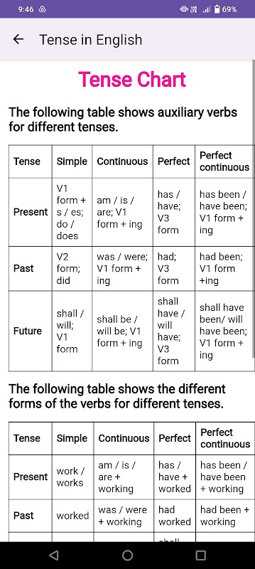 Molti studenti hanno confusione in Tense. Non sanno come usare correttamente i tempi. Ecco perché abbiamo sviluppato questa app tesa, Tense in English. Dopo aver letto i tempi da questa app non dovrai leggere un altro libro sui tempi. Questa app va dal livello base a quello avanzato. Questa app è stata realizzata con molto duro lavoro. Dopo aver letto questa app non avrai alcuna confusione nel tempo.
