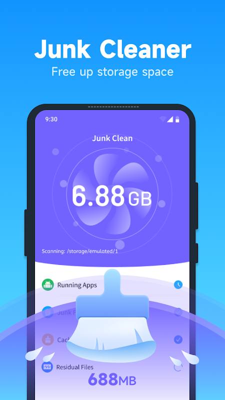 • Scansiona e analizza rapidamente l'archiviazione del tuo telefono, ti aiuta a ripulire i file spazzatura e le cache delle app ed eliminare le cartelle vuote inutili.