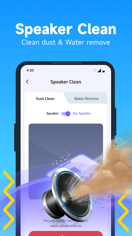 • Crea un suono unico e una frequenza di vibrazione per aiutarti a rimuovere polvere e acqua dall'altoparlante del tuo telefono cellulare.
