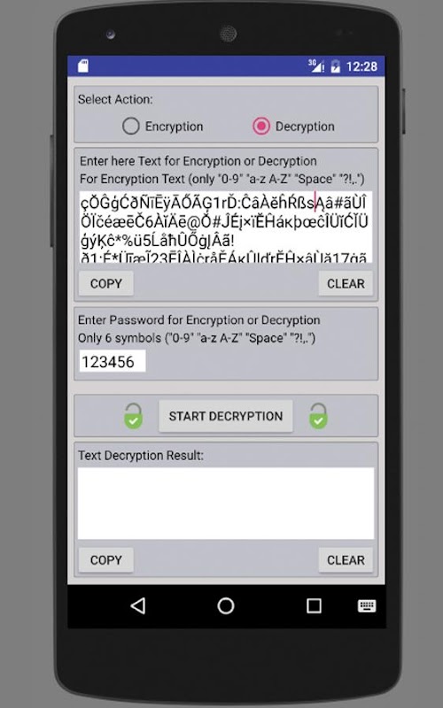 Testo Encryption - decrittografia applicazione.