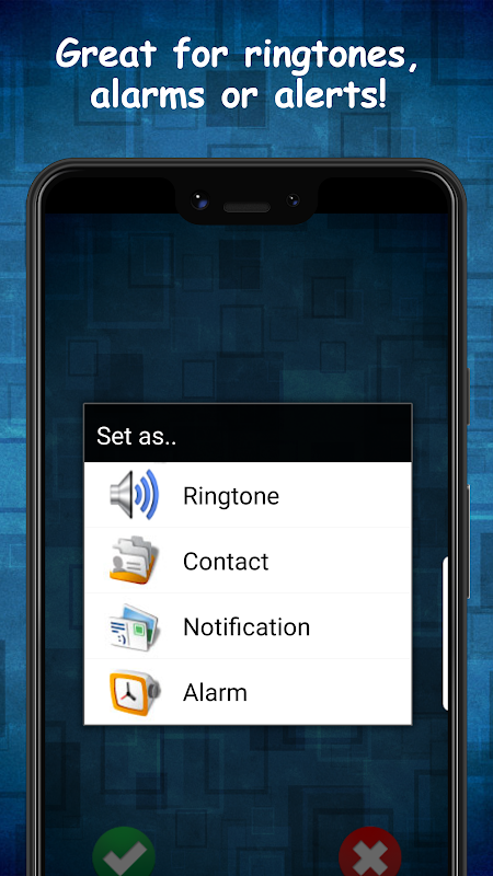 è sufficiente selezionare i suoni dei messaggi di testo gratuiti preferiti per ascoltarli e salvare toccando il segno di spunta verde.