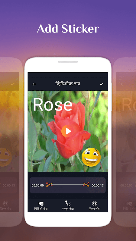 Text on Video in Marathi Font, Keyboard & Language app allows you to add various Marathi text and write Marathi poetry on video from your gallery. You can write your own quotes, poetry, message, status etc on videos with Marathi Text on Video and share them with your friends. Add Marathi Text on video and choose from 20 different stickers in various categories so you can use to make your video look elegant with Text on Video in Marathi Font, Keyboard & Language video editing app. On this Valentine day add your loved once name on video and send them lovely valentine day video message using Marathi keyboard included in Video Text Editor Marathi app.