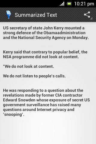 Provided the ability to get content of web page directly to "Text Summarizer" app (Ex: Go to Menu on browser -> Share Page -> Select Text Summarizer)