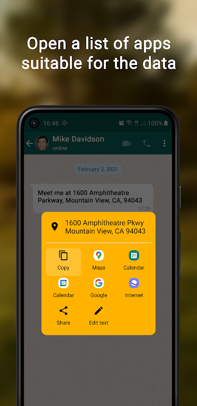 Non c'è bisogno di selezionare e copiare il testo: basta fare uno screenshot e ricevere una notifica. Successivamente puoi scegliere cosa fare con le entità di testo trovate: copia negli appunti o elabora in un'altra app. Ad esempio, puoi scegliere di aprire l'Indirizzo utilizzando Mappe, creare un Evento nel tuo Calendario o condividerlo con qualsiasi app che supporti l'immissione di testo.