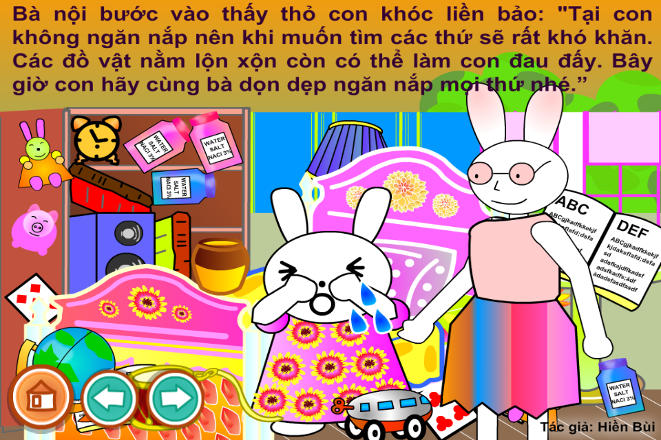 Thỏ con buồn lắm thì bà của Thỏ bước vào. Bà bảo Thỏ con phải dọn phòng sạch sẽ và sắp xếp mọi thứ gọn gàng.