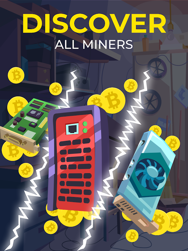 ⭐Unisci ed esamina i tuoi dispositivi di mining. Collega il dispositivo a una presa di corrente non appena appare in modo che possa iniziare a estrarre bitcoin. Unisci dispositivi simili per aprirne di nuovi. I nuovi miner portano più entrate.
