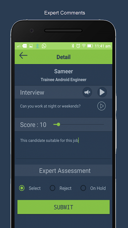 Utilizzando questa applicazione o esperto gestore assumente può dare il loro feedback per un colloquio