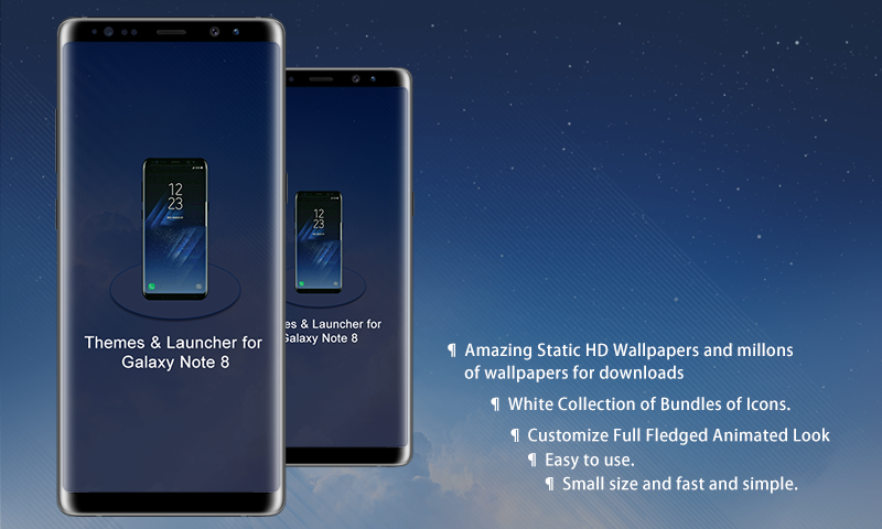 Volete che il vostro sguardo telefono android come Note8? E 'tempo di abbellire il vostro Note8 in stile moderno con la nostra bella app. Ora è molto facile scaricare e usa la nostra bella launcher per Android. Note8 launcher porta un sacco di carte da parati, così come il quale è possibile utilizzare per le sfondi sfondi Samsung. si tratta di un tema migliore lanciatore, galassia per i telefoni Android. Questo tema Galaxy hanno sfondi belli e meravigliosi, tema galassia e più attraenti lanciatori Android pure. Con l'installazione di questa galassia 3d lanciatore si verifica un lanciatore adatto che rendono il vostro telefono Android più veloce e molto più agevole quindi prima che sia anche a migliorare le prestazioni dello smartphone. Contiene personalizzate lanciatori temi 3d.