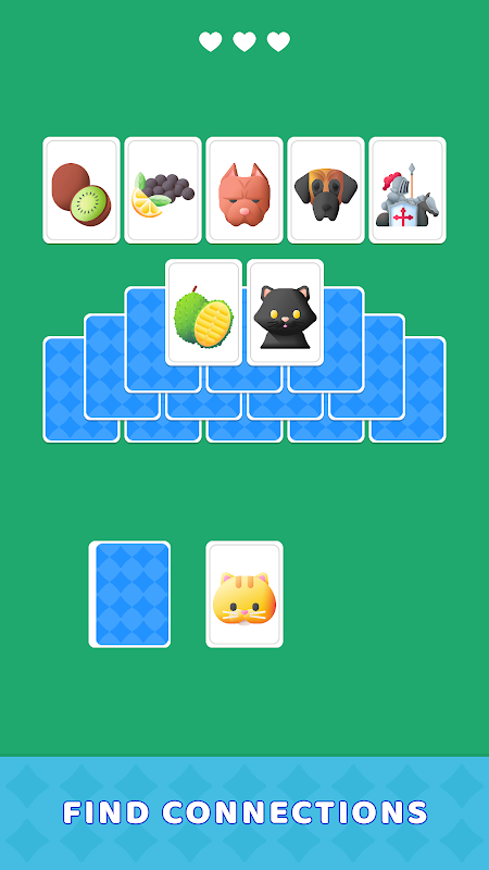 Match cards by theme such as animals, food, places, objects and more. Each card shows a cute icon or a clear word, and your goal is to find the correct theme match to clear the peaks.