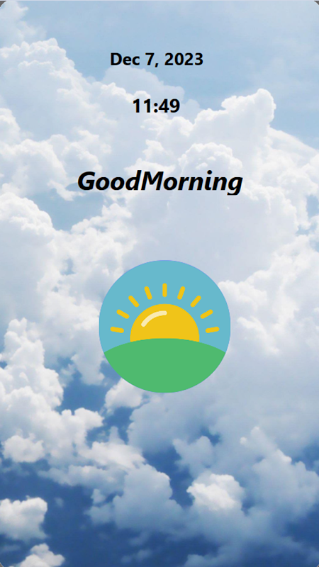 L'app prende la tua ora e la tua data per trovare ciò che fa per te in quel momento. Ogni volta, verrà visualizzato un messaggio diverso che accoglierà l'utente; l'utente potrà anche fare clic per visualizzare tutti i messaggi.