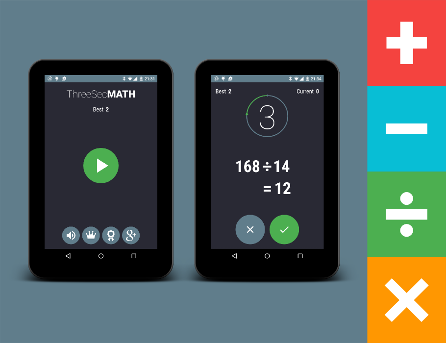Are you good at math? Are you quick? Show it to all your friends. Sign-in into Google Play Games, and compare achievements and best score with your friends.