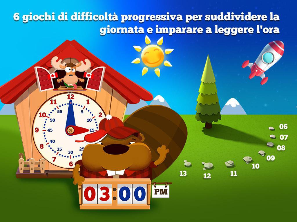 Il seguito del gioco rinforza le conoscenze del bambino e gli insegna le sottigliezze del linguaggio associato alla formulazione oraria. Le nozioni di “meno un quarto" o “e un quarto” vengono presentate e testate con l’aiuto di un quiz. Il finale dell’applicazione aggiunge un tocco ludico nel quale il bambino, in un luna park, deve fermare un orologio al momento giusto. Il suo punteggio salvato lo spingerà a esercitarsi regolarmente per migliorarlo.