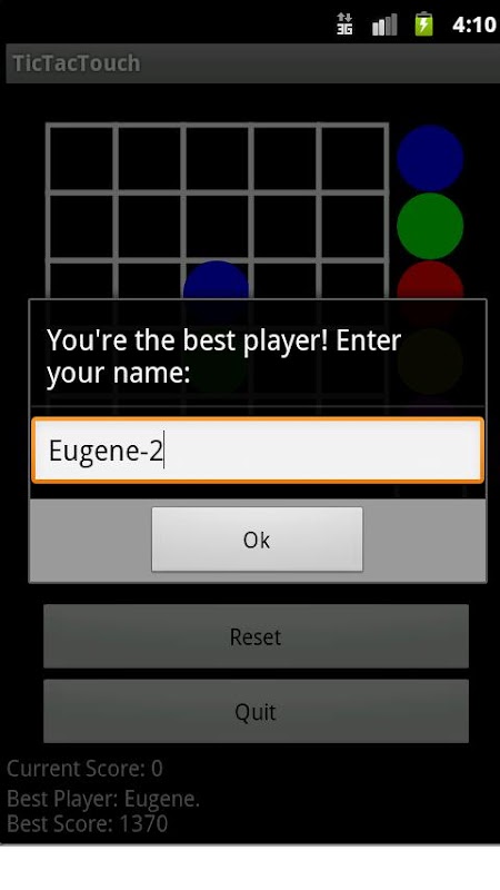 Tic-tac-touch è un gioco tra il giocatore e il computer che, a turno, che segnano gli spazi con le palle colorate in una griglia 5 × 5. Se un giocatore riesce a disporre tre o più rispettive sfere dello stesso colore in una fila orizzontale, verticale o diagonale poi le palle scompaiono e questo giocatore ottiene 10 punti per ogni scomparsi palla. Dopo il punto di ogni giocatore, computer di piazza 2 palline da qualche parte nella griglia. L'obiettivo del gioco è quello di ottenere il punteggio più alto