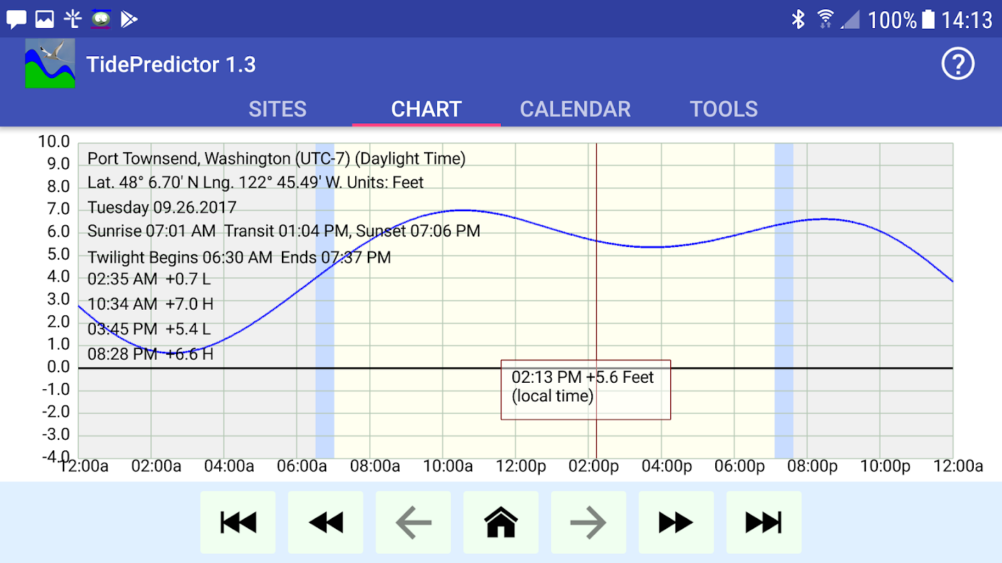 TidePredictor è il terzo - e di gran lunga il migliore - programma di previsione di marea ho scritto per un periodo di quindici anni. In più del 90% dei casi, le sue predizioni sono identici a quelli stampati nelle tabelle marea. Questo è un programma scritto da qualcuno che capisce la fisica, la matematica, così come le esigenze dei marinai (Ho navigato in solitario intorno al mondo).
