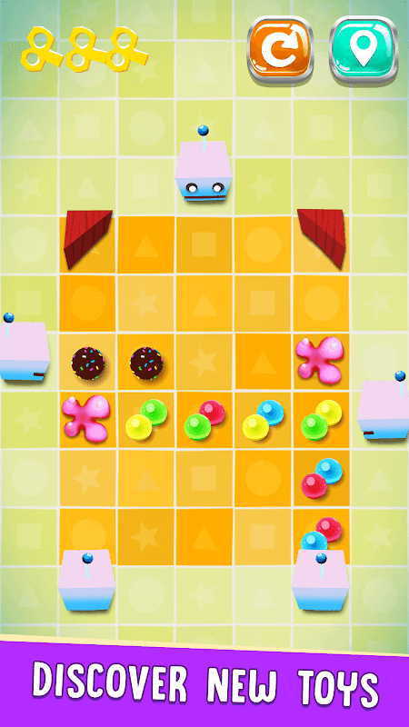 Discover new toys as the robots collect marbles throughout the toy shop. Use toy blocks to change your robot’s direction, send robots walking over each other’s heads, leave your robots trapped in bubblegum, and smash chocolate balls into teddy bears!