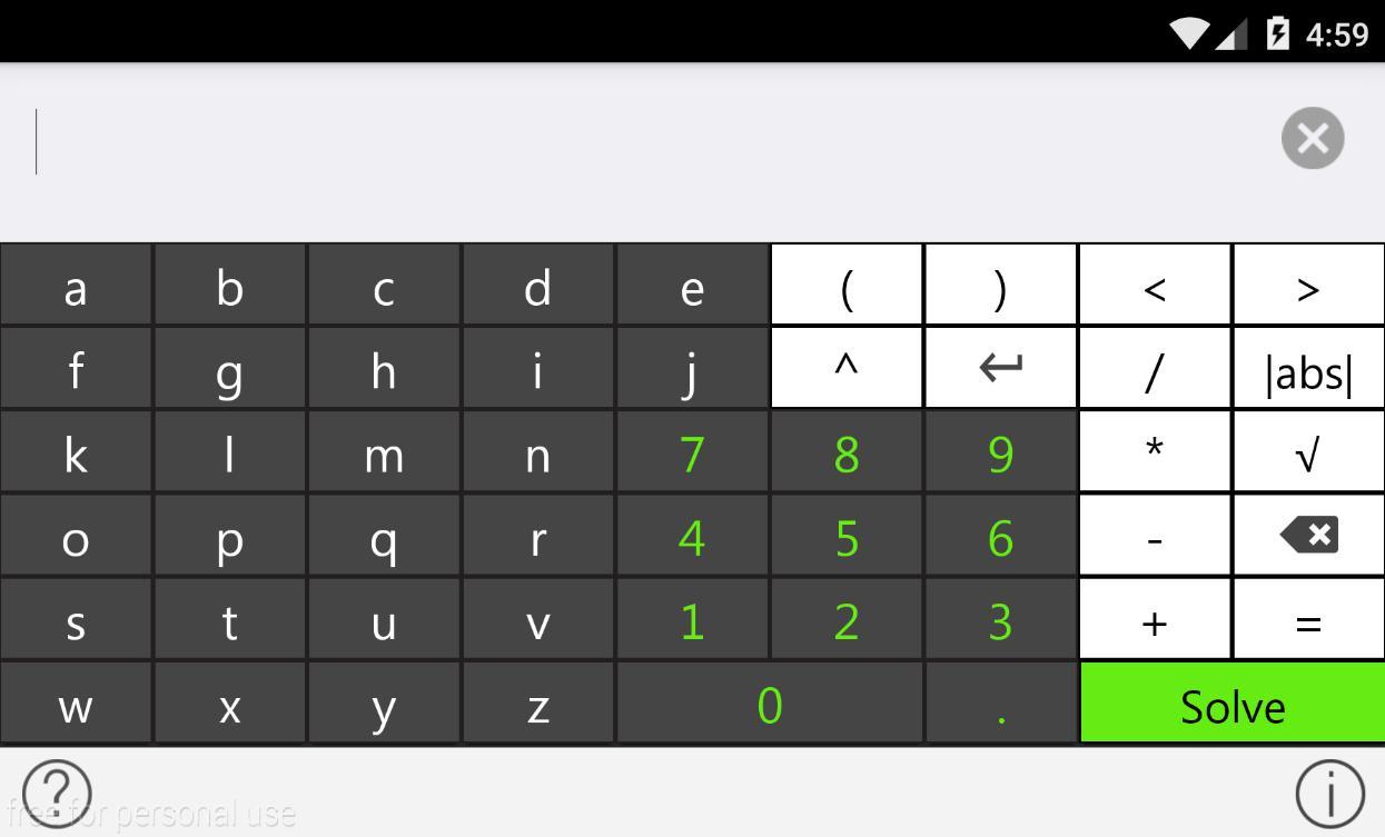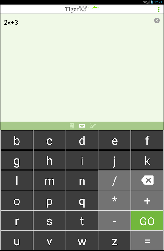 The Tiger Algebra Solver App allows you to easily get answers and solutions for Algebra Problems in A variety of topics. The Algebra Solver, Simplifier and Evaluator currently handles :